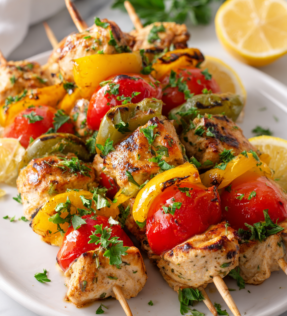 Let the skewers rest for 5 minutes on a plate. Then, serve with your favorite sides—rice, salad, or crusty bread. Garnish with chopped herbs for a fresh touch.