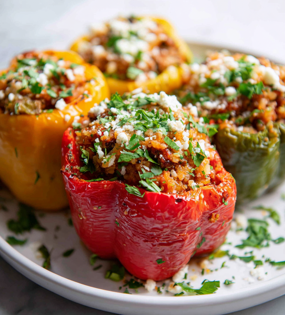 Pre-roasting peppers makes them softer and easier to stuff. Roast at 200°C (400°F) until slightly blistered, about 15 minutes.