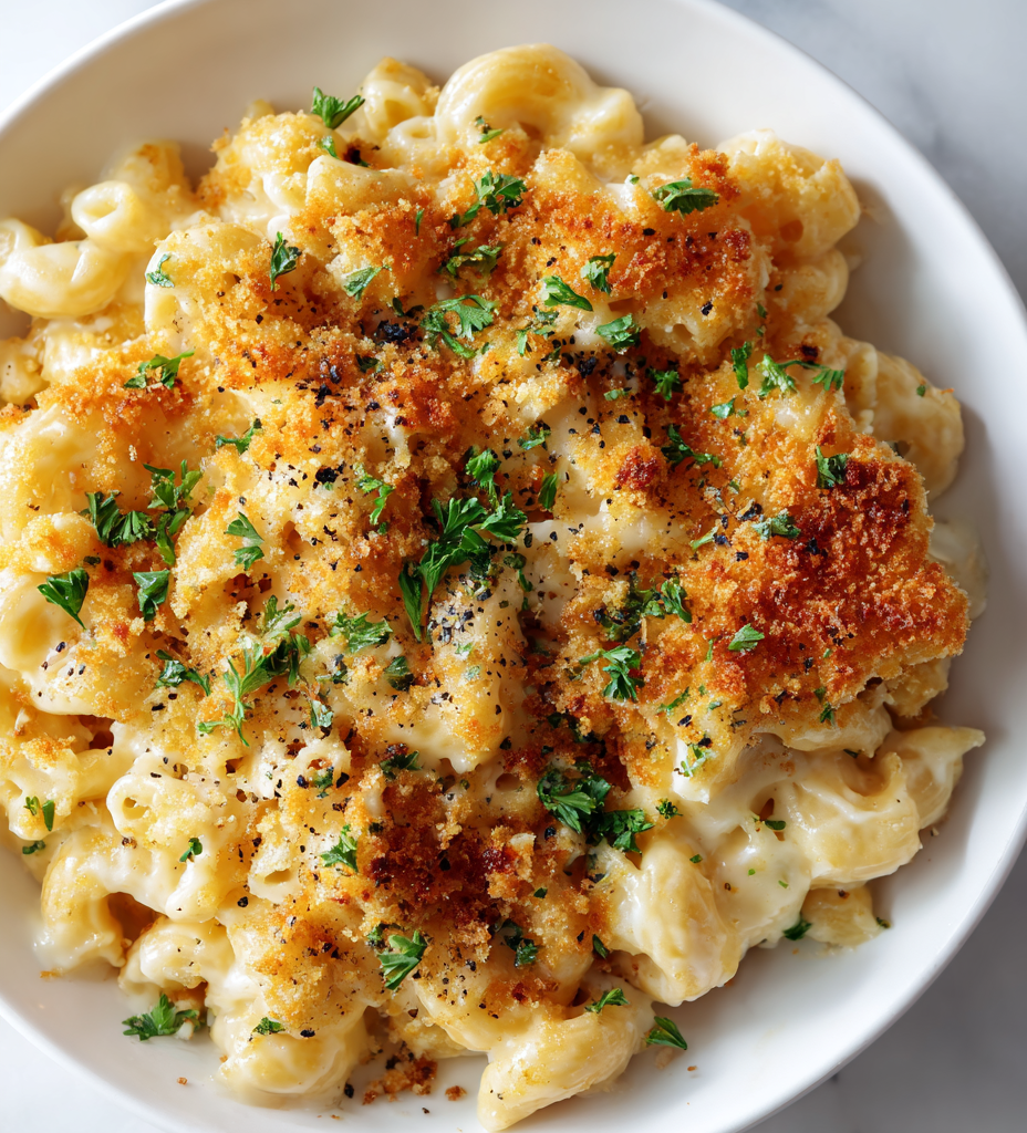 - Transfer the cheesy pasta to a baking dish if you want a crispy top. Mix the breadcrumbs with melted butter, then sprinkle over the pasta. Bake at 200°C (390°F) for 10-12 minutes until bubbly and golden, or broil for 2 minutes for a charred, crispy finish.