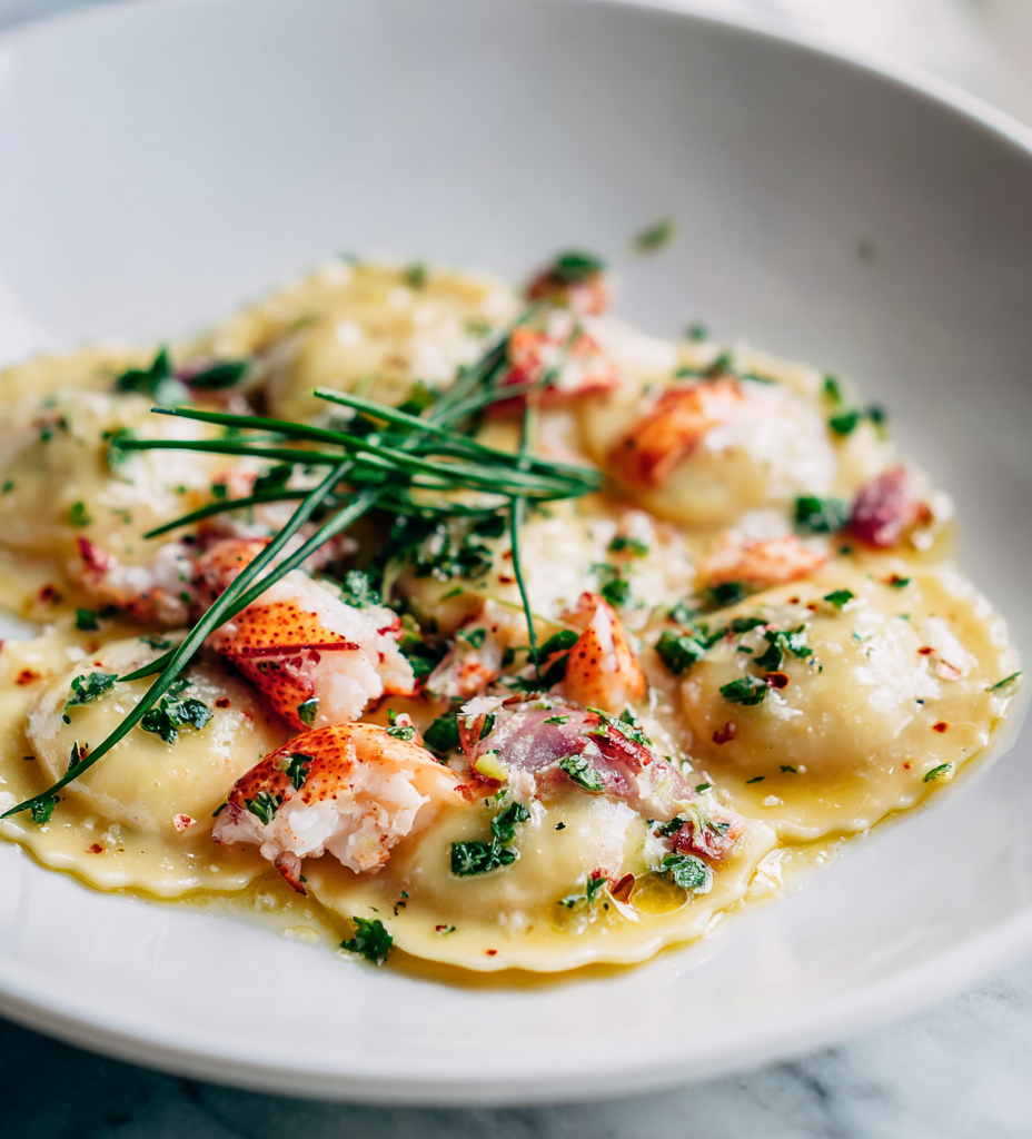- Finish by sprinkling with additional herbs or lemon zest, then serve immediately while warm. Enjoy the delicate, plump ravioli with their rich lobster filling and bright, buttery sauce.