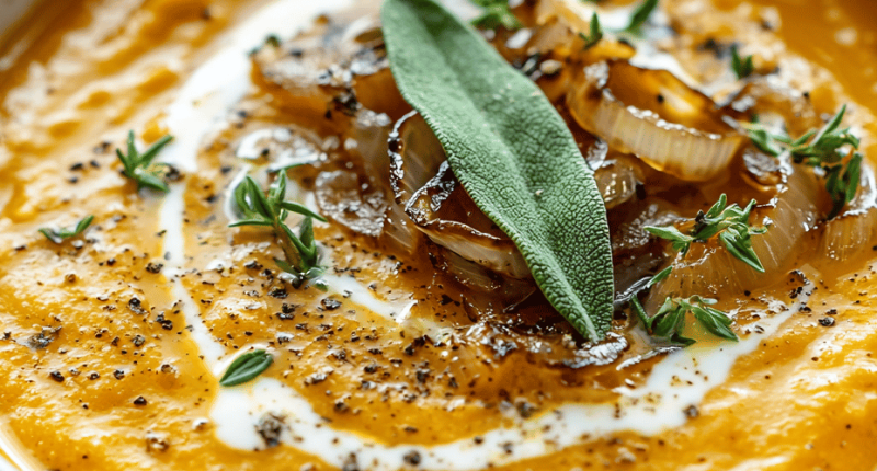 A Fall Twist: Creamy Pumpkin Soup with a Touch of Sage and Nutmeg