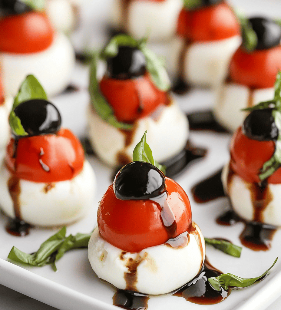 For best results, use small mozzarella balls and pitted black olives. You can also pre-cut olives for easier assembly. Keep refrigerated until ready to serve to maintain freshness.