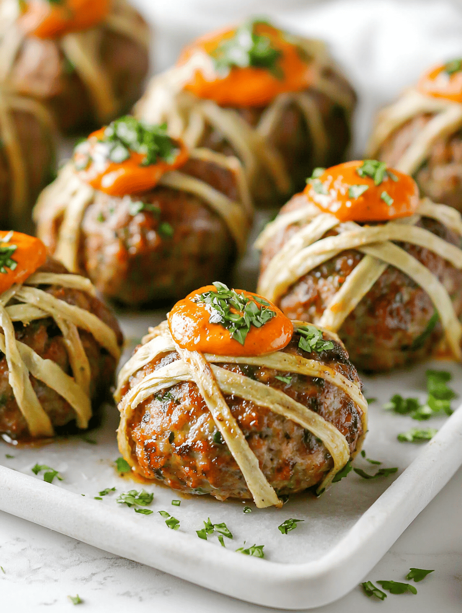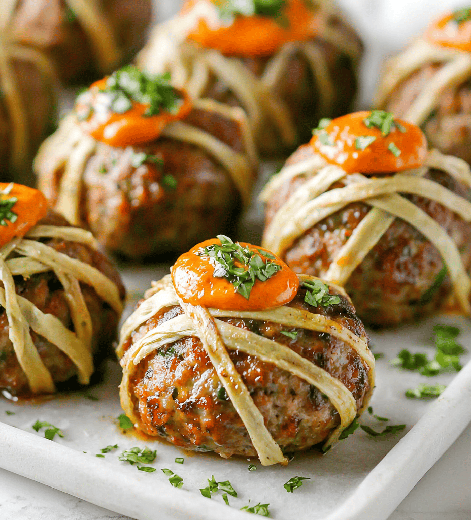 Creating these mummy meatballs turns a simple dish into a memorable event. The playful presentation and the irresistible aroma make it a highlight of any Halloween gathering. It’s a little chaos, a lot of flavor, and a whole lot of fun wrapped into one delicious bite.
